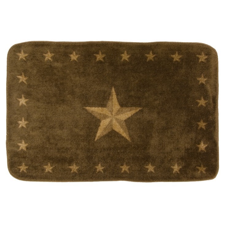 This western Star Rug - Small is the perfect compliment to your kitchen or bathroom. Made of 100% polyester with a non-side back The dark chocolate color with two-tone tan stars will coordinate with just about any western decor.